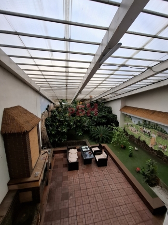 Огороженная асфальтированная территория, баня, бассейн, зимний сад .