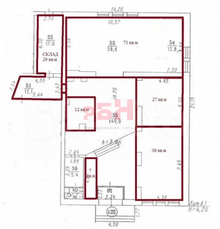 - 71 кв.метров, арендная плата 156 200 рублей в месяц