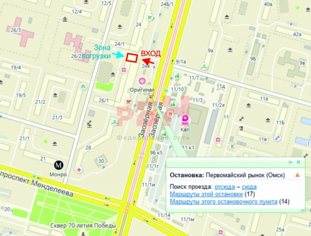 Рядом остановка, жилой массив и «Первомайский рынок».