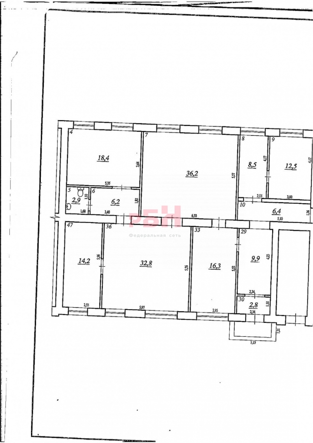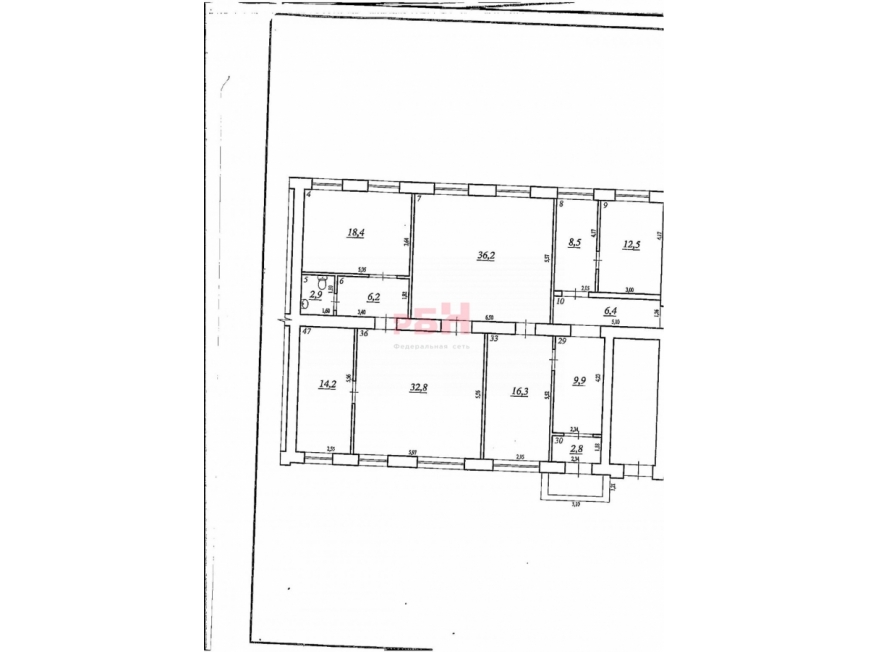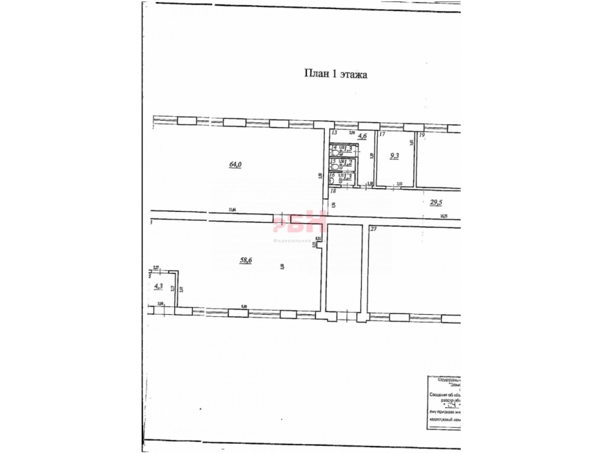 Общая площадь 817 м2: 1 этаж 580 м2, подвальные помещения 237 м2.